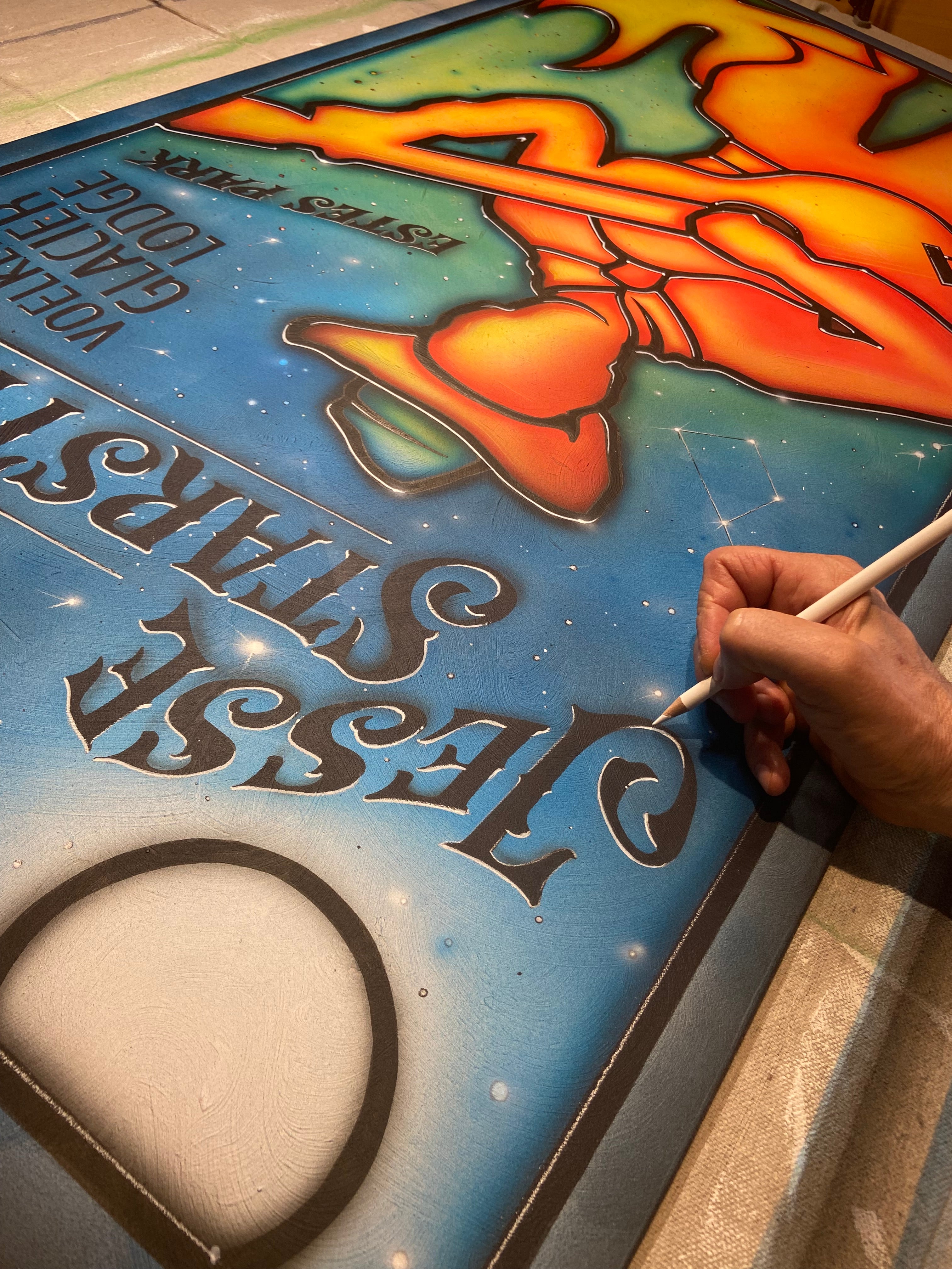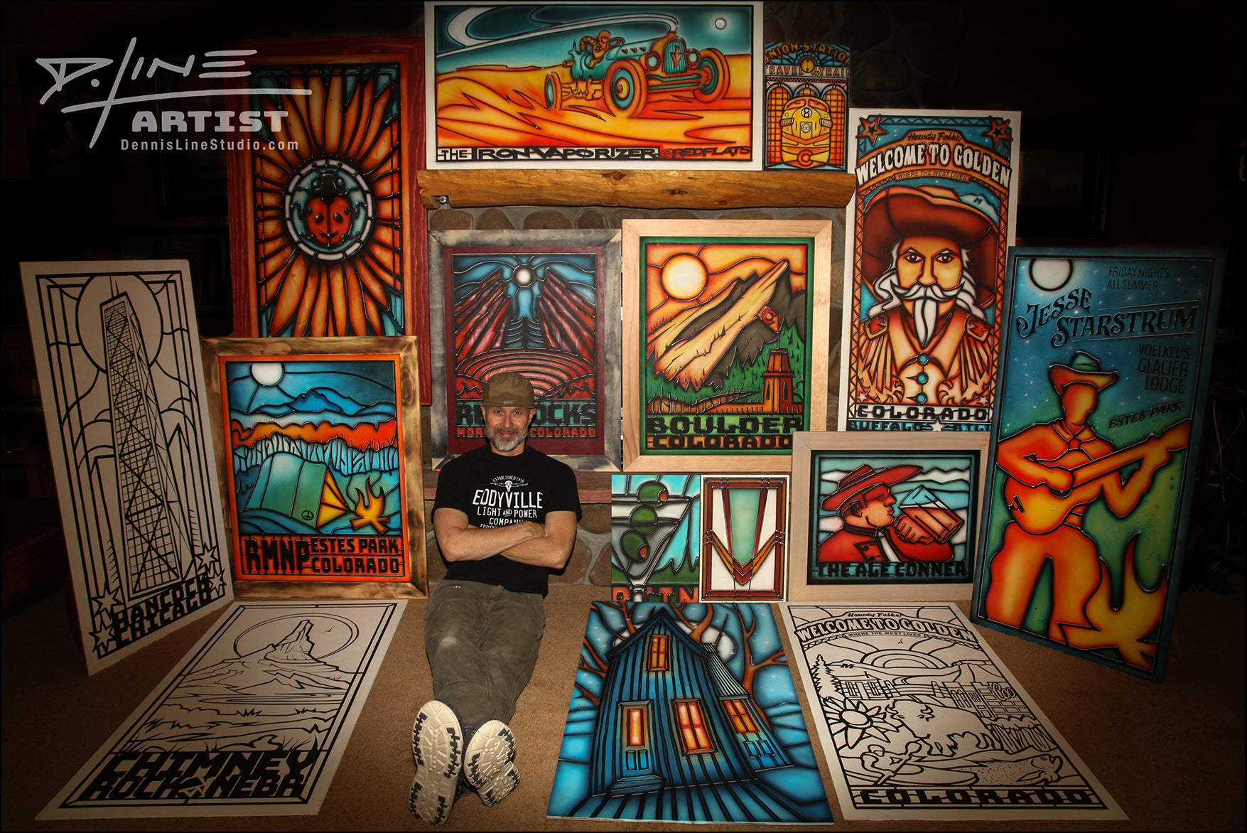 Dennis Line is a multidisciplinary artist whose work spans painting, illustration, and design—often blending traditional techniques with bold, narrative-driven visuals. Best known for developing Glassism, a style that fuses the structure of stained glass with hand-painted detail, Dennis also creates richly layered acrylic and oil paintings, graphite drawings, and mixed media works that explore story, place, and Americana with modern edge.